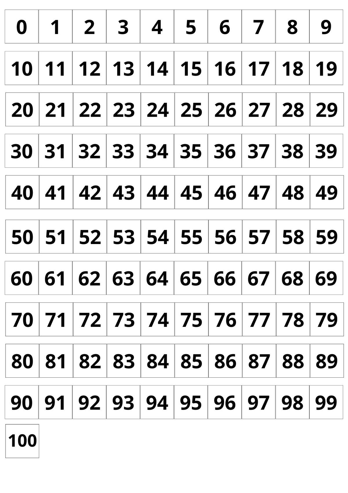 Castillo numérico del 0 al 100