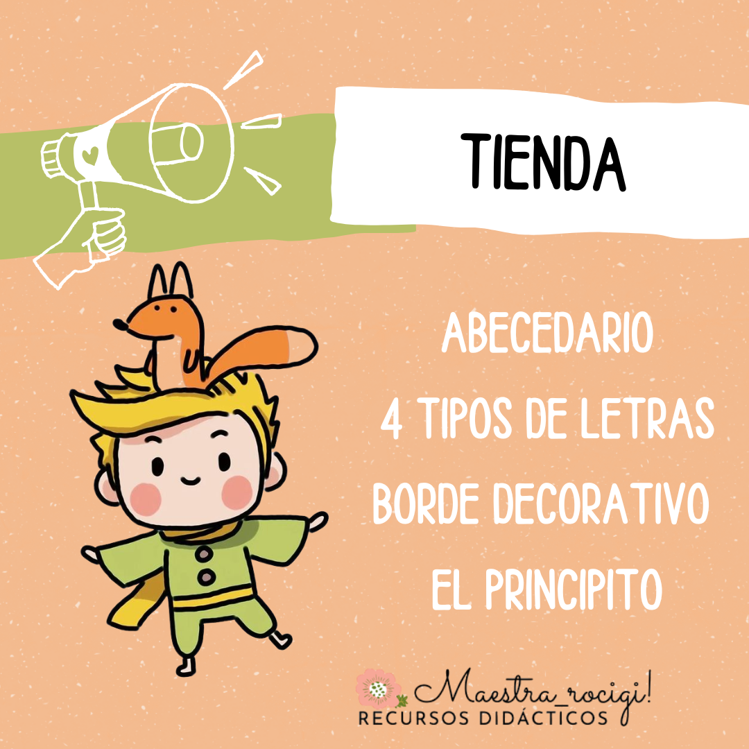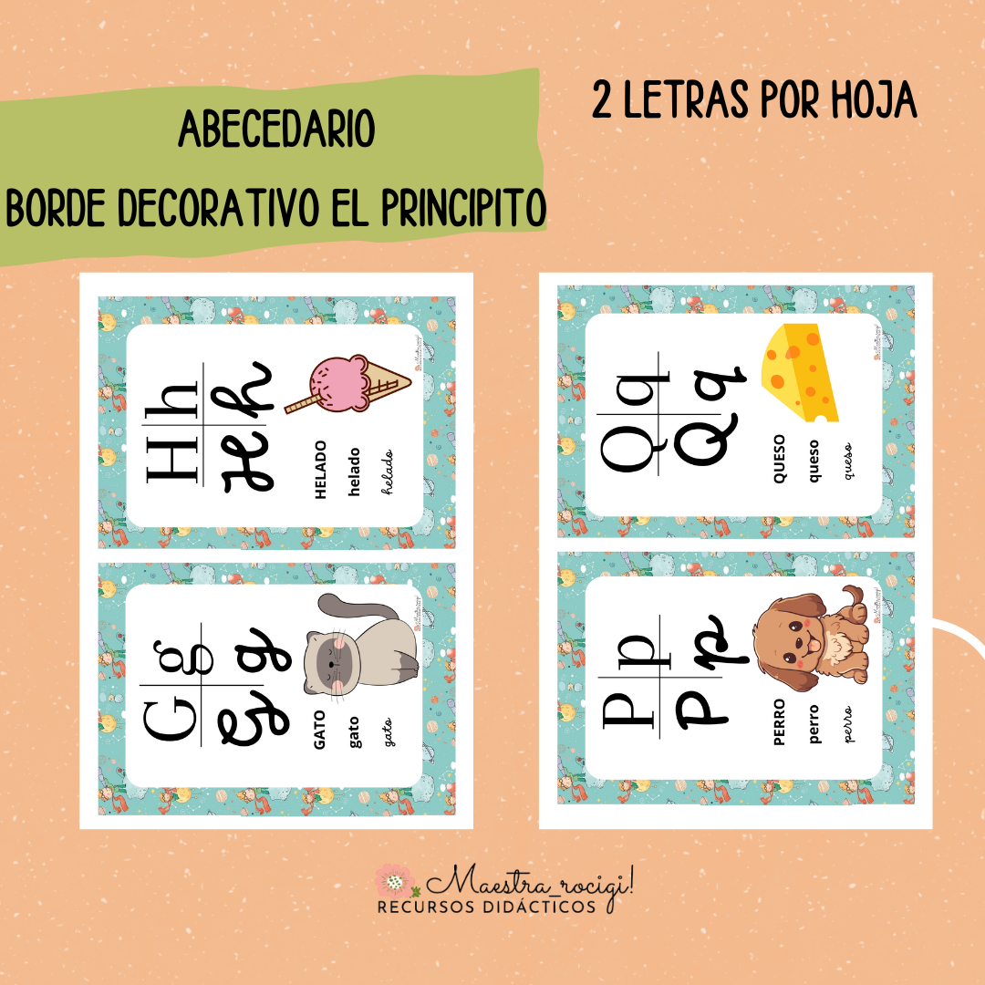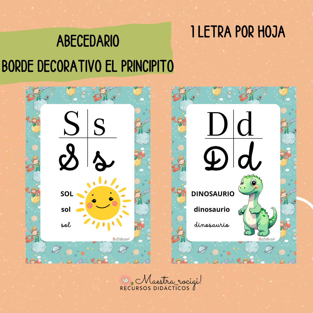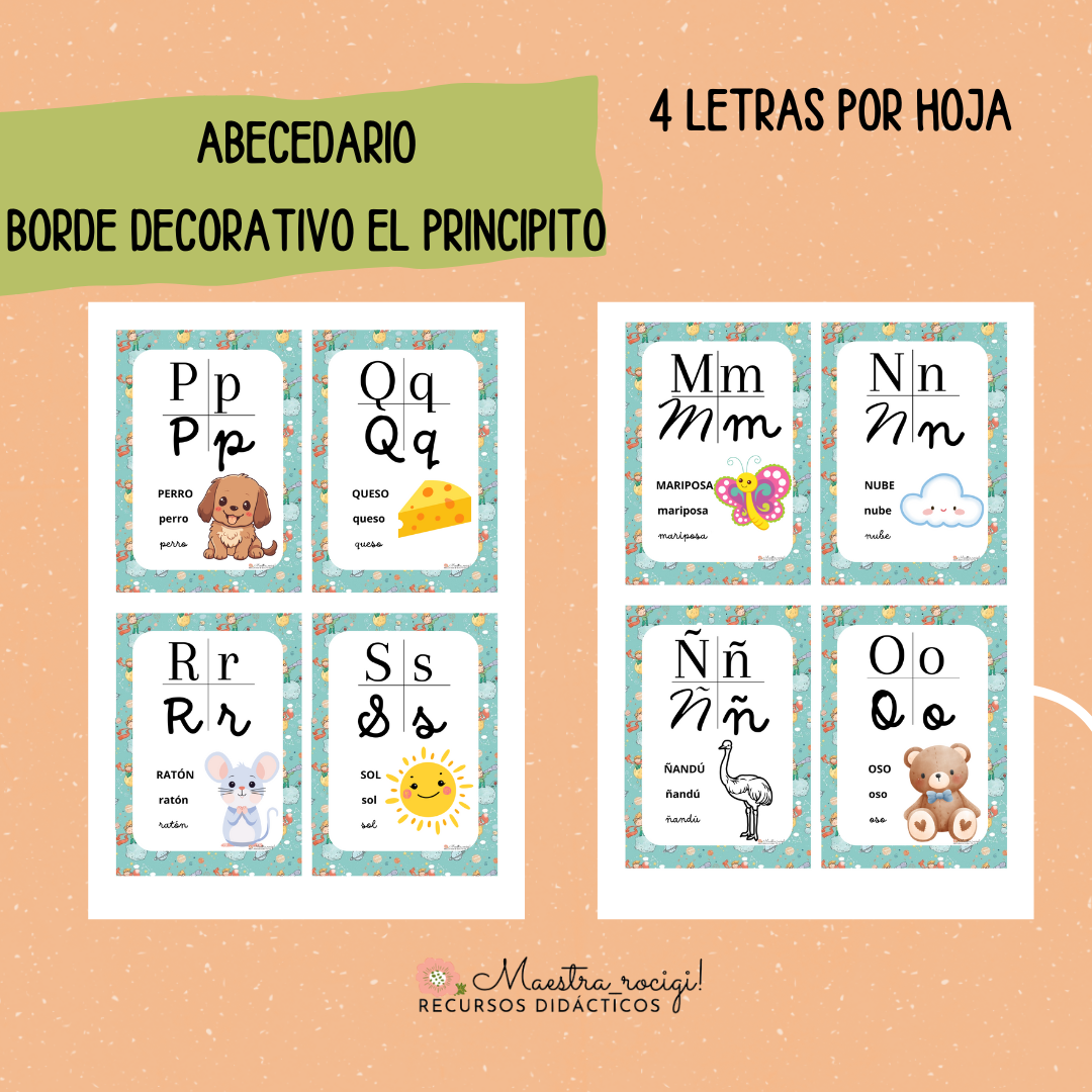 Abecedario con los 4 tipos de letras con borde decorativo el principito.