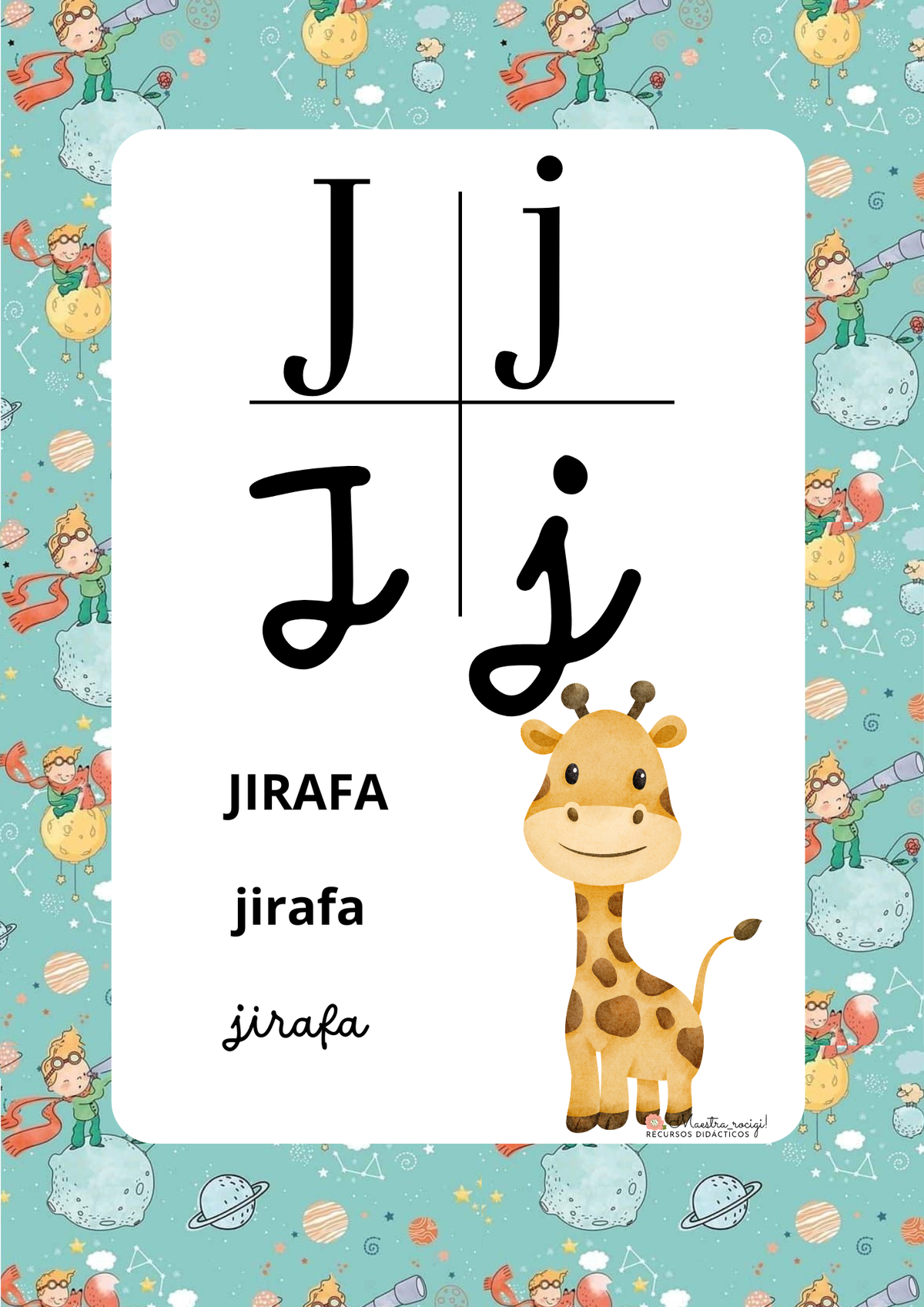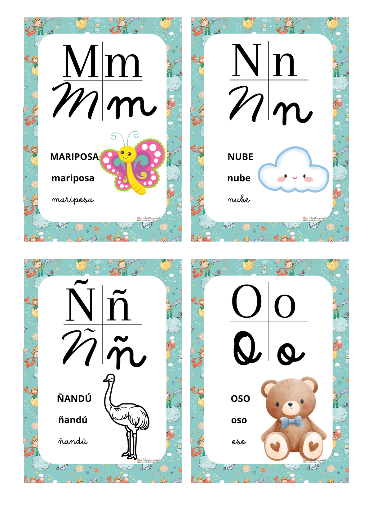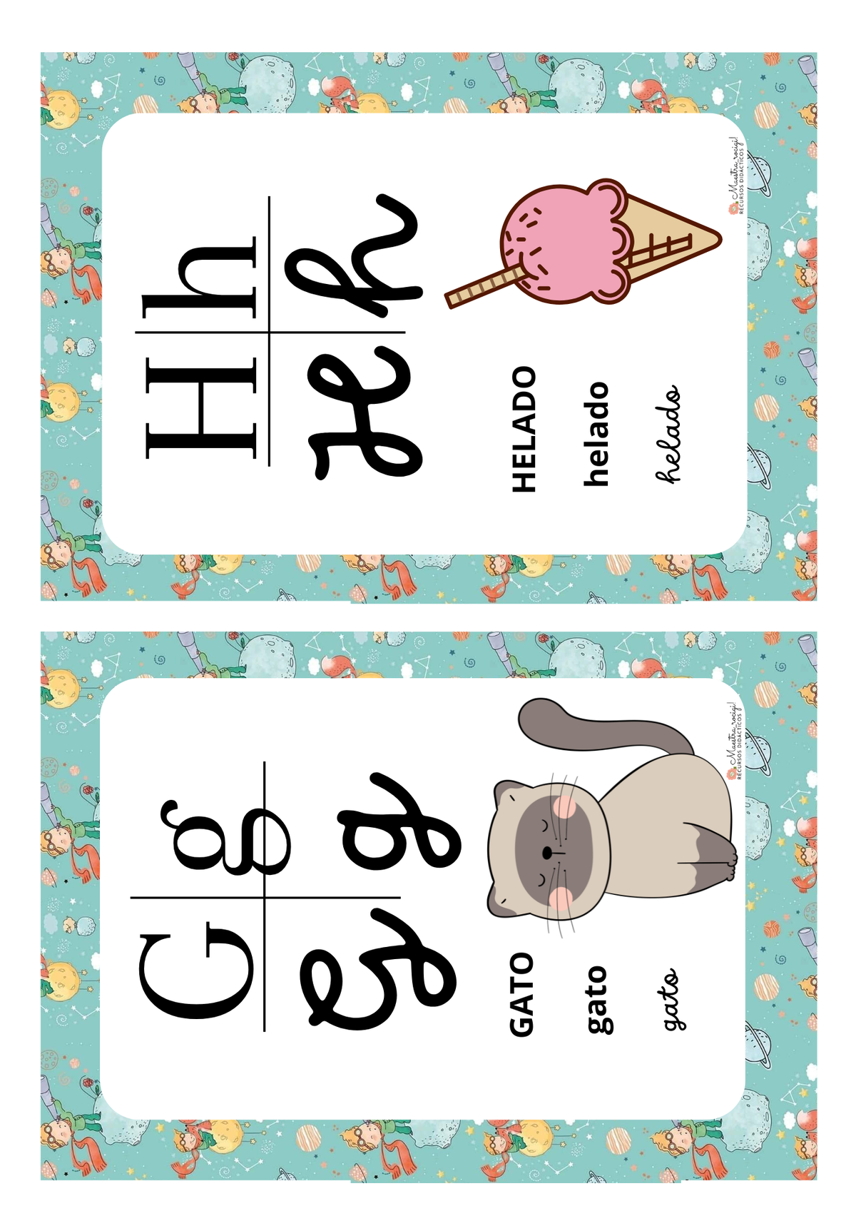 Abecedario con los 4 tipos de letras con borde decorativo el principito.