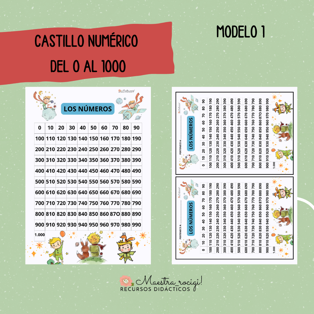 Castillo numérico del 0 al 1000 de 10 en 10 temática el principito.