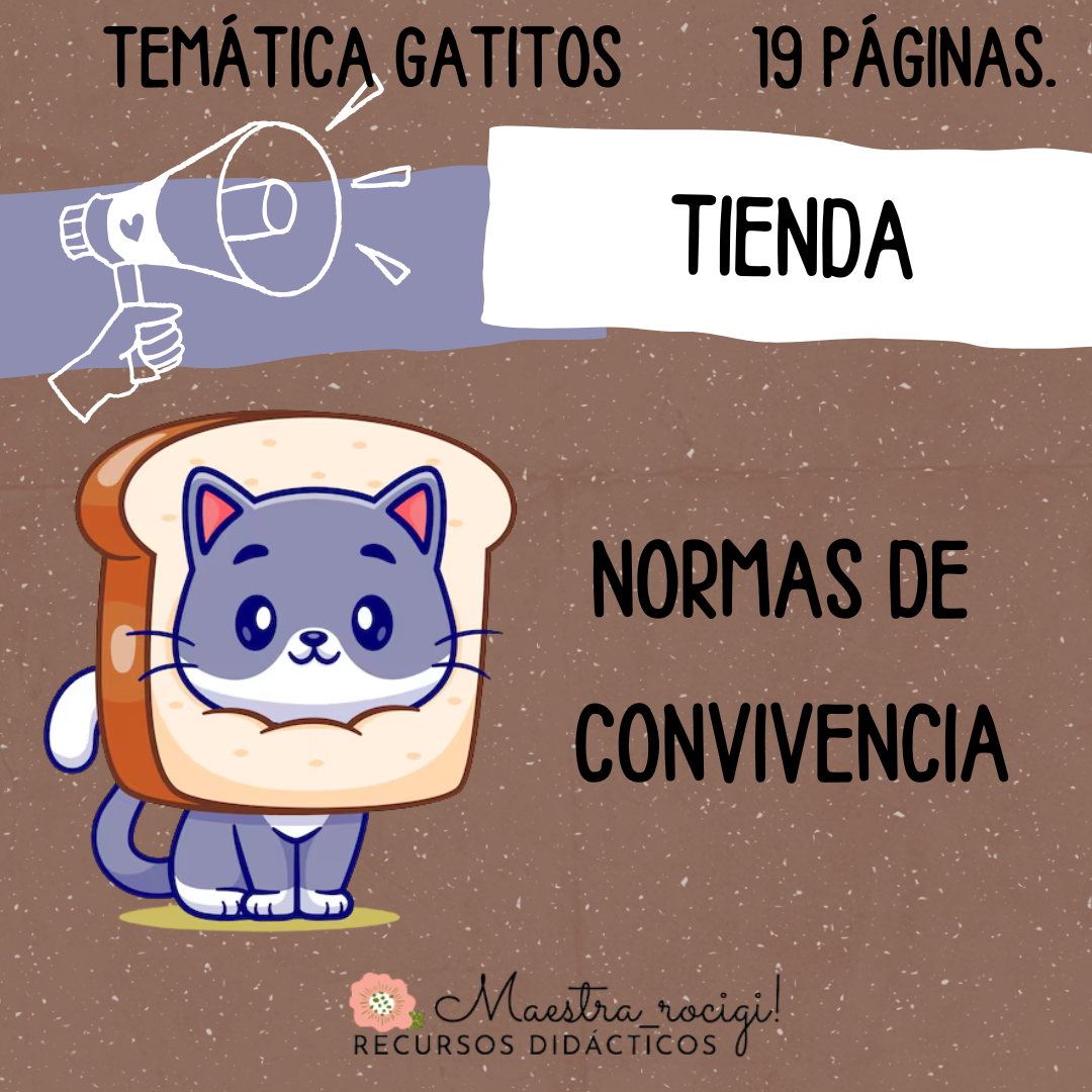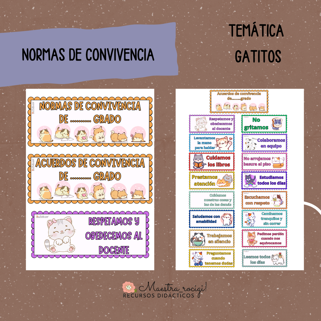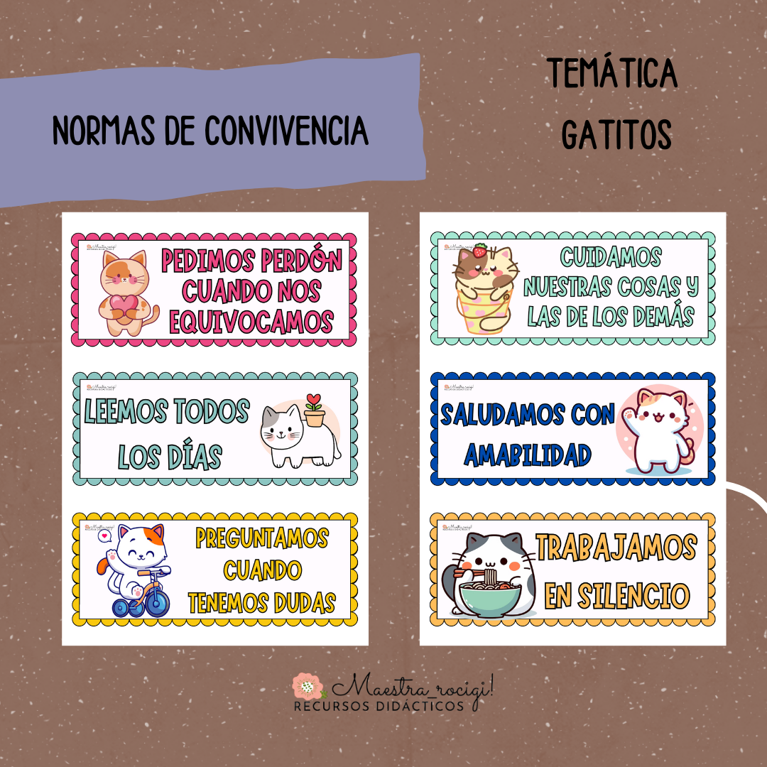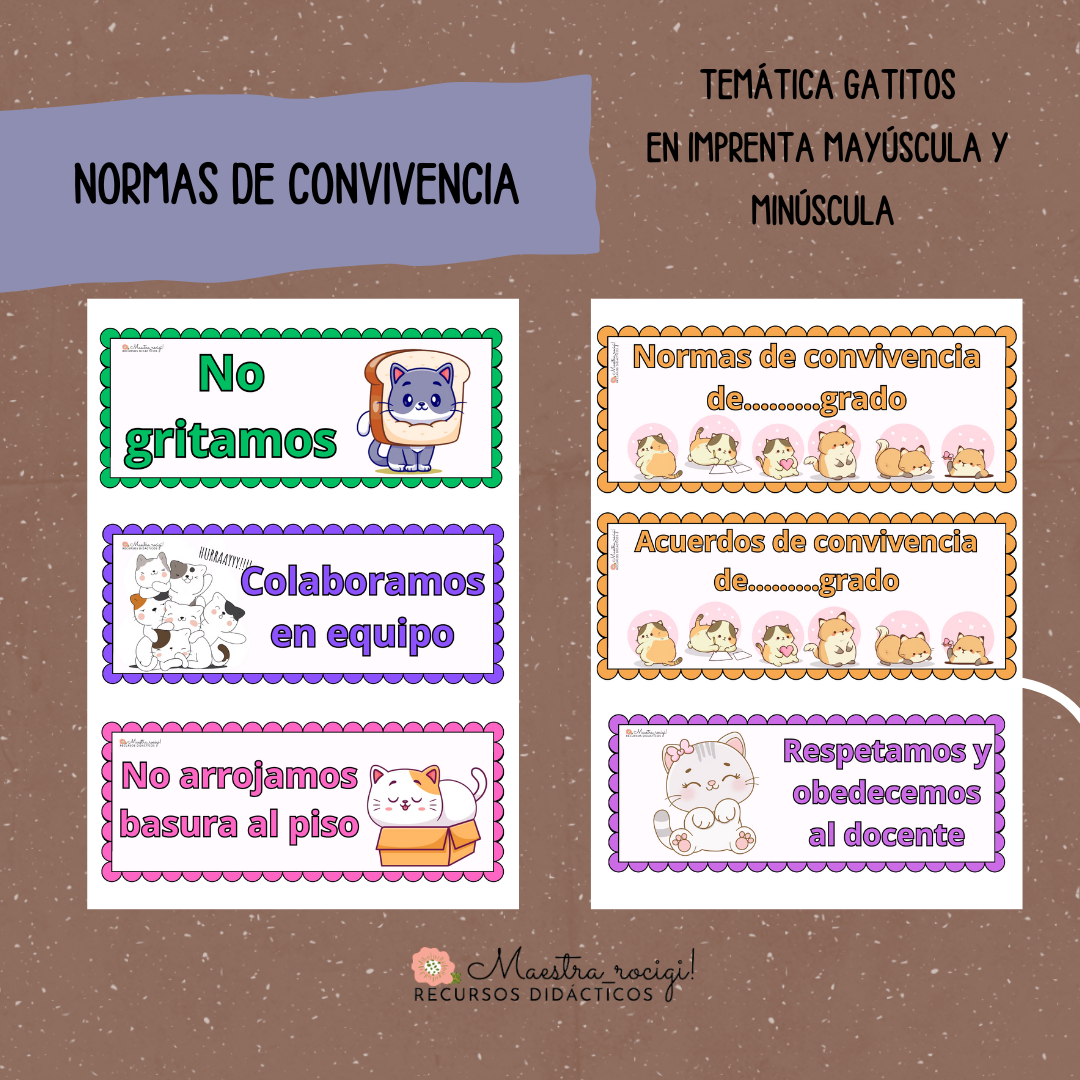 Normas de Convivencia temática gatitos en imprenta mayúscula y minúscula