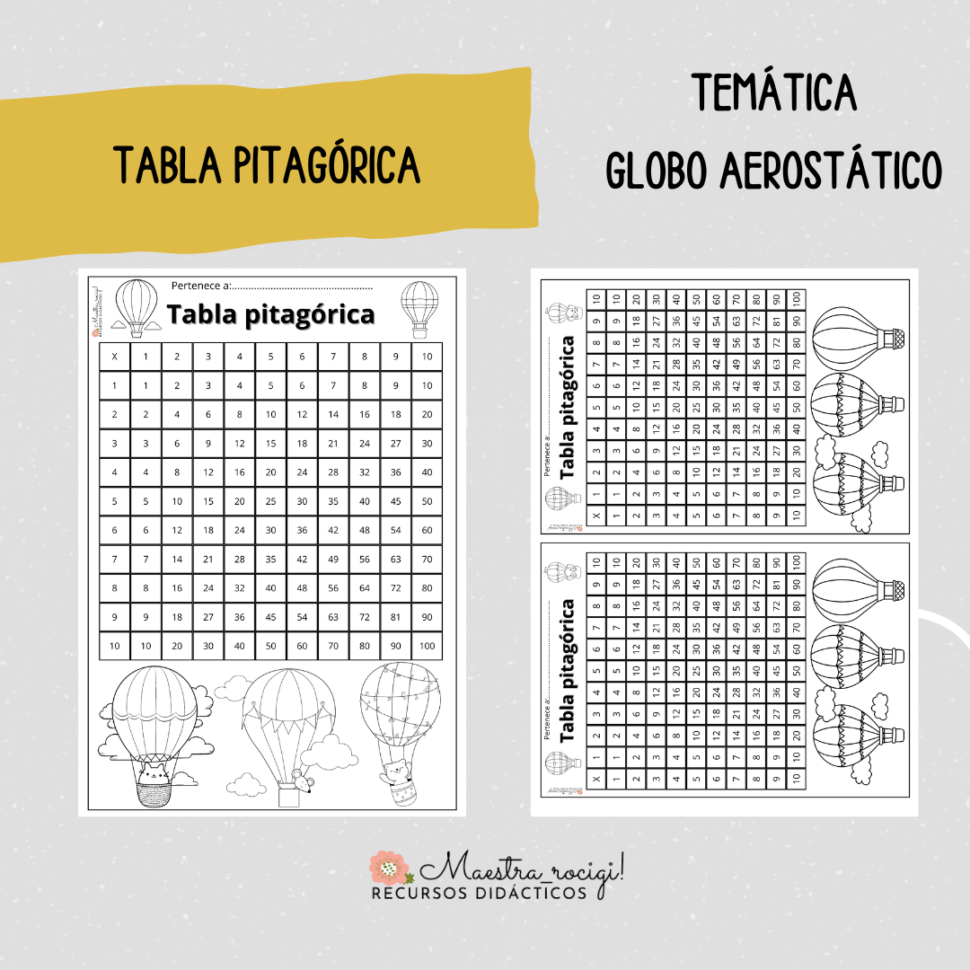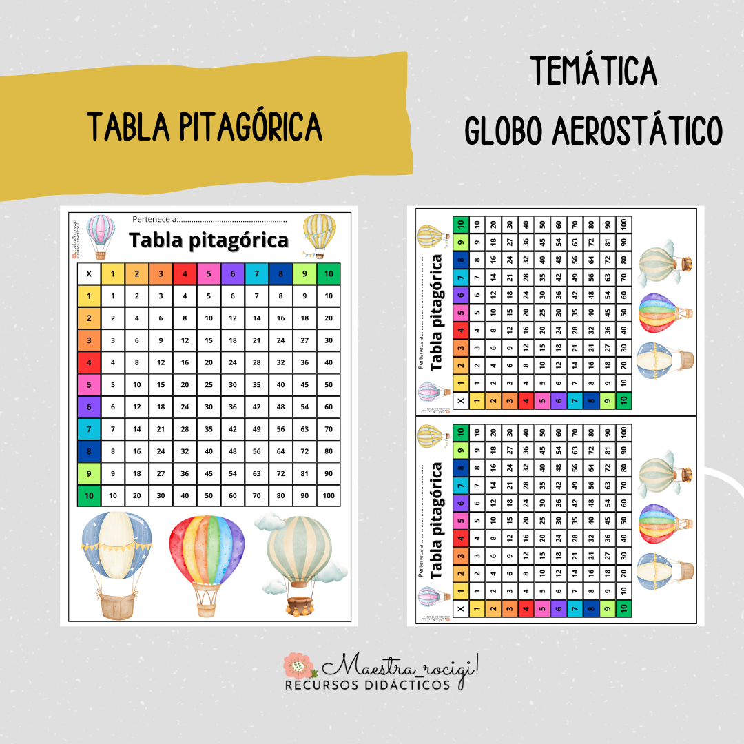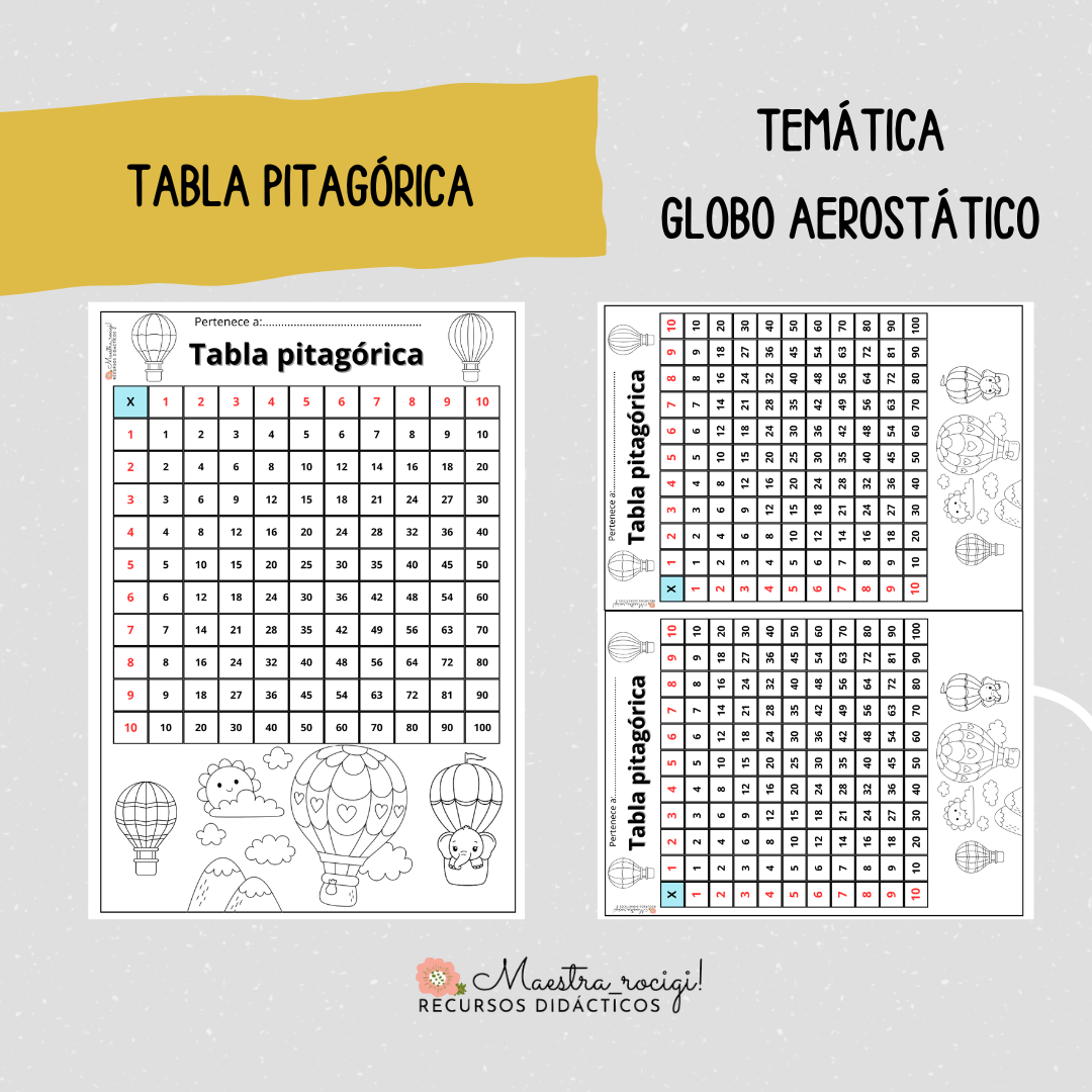 Tabla pitagórica temática globo aerostático