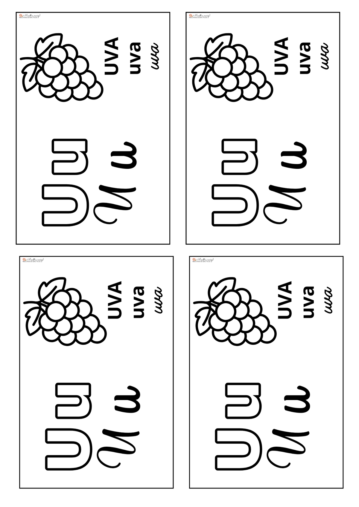 Carteles tamaño A4 y además hojas con fichitas más pequeñas, ideales para el cuaderno de los niños.