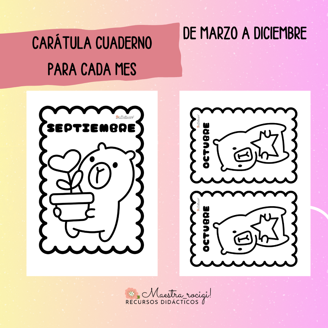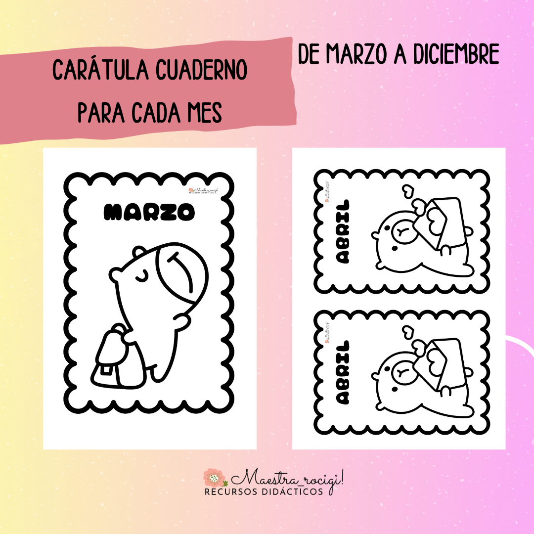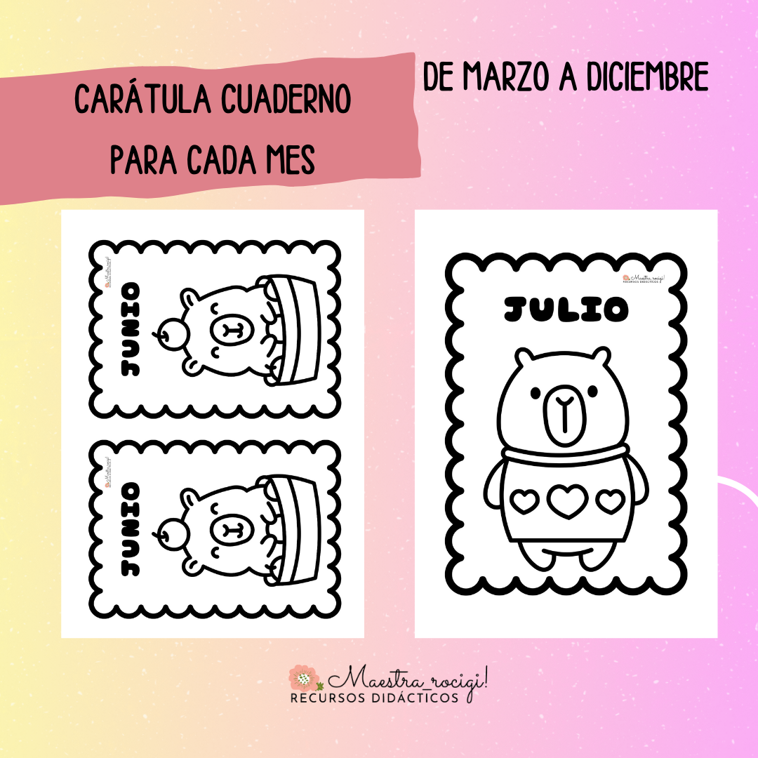 Carátulas para el comienzo de cada mes, temática capibara