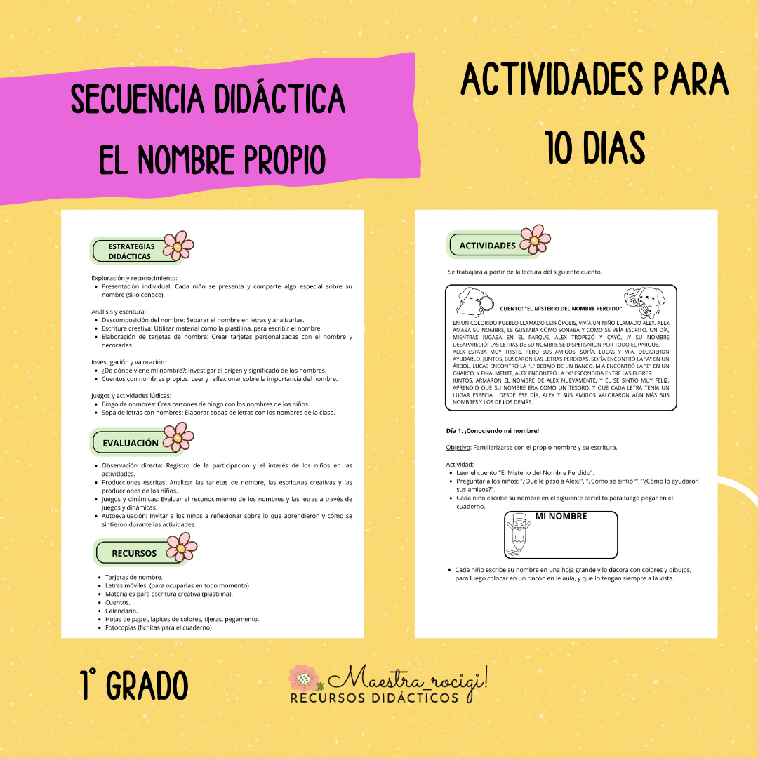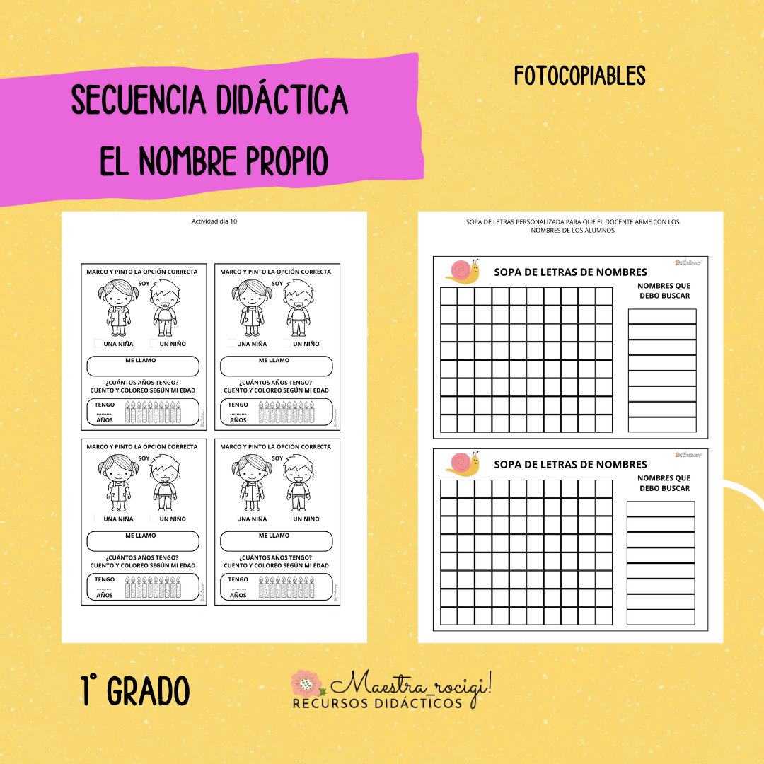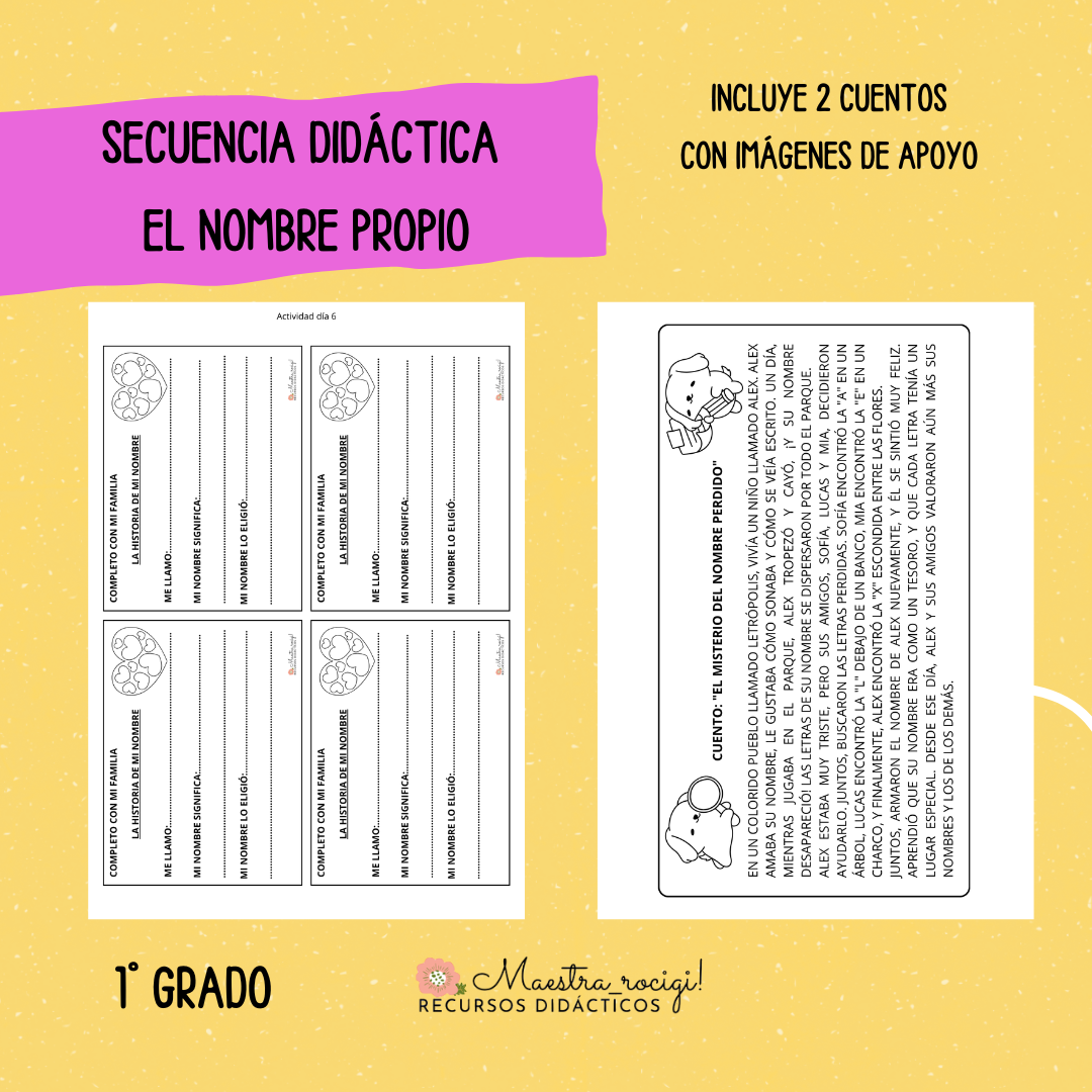 Actividades con cuentos, calendario, juegos, dibujos, sopa de letras, bingo de nombres, entre otros