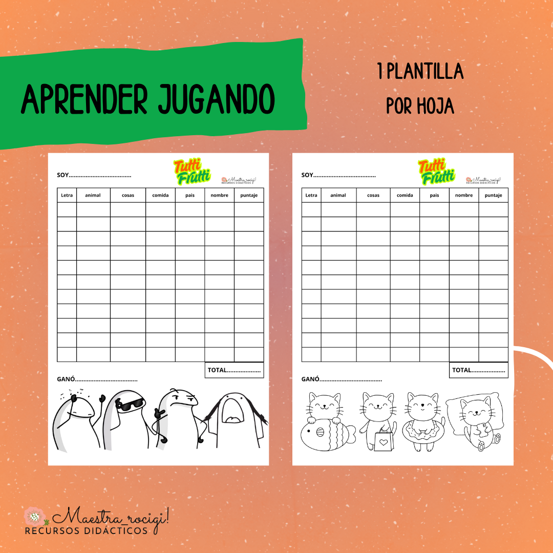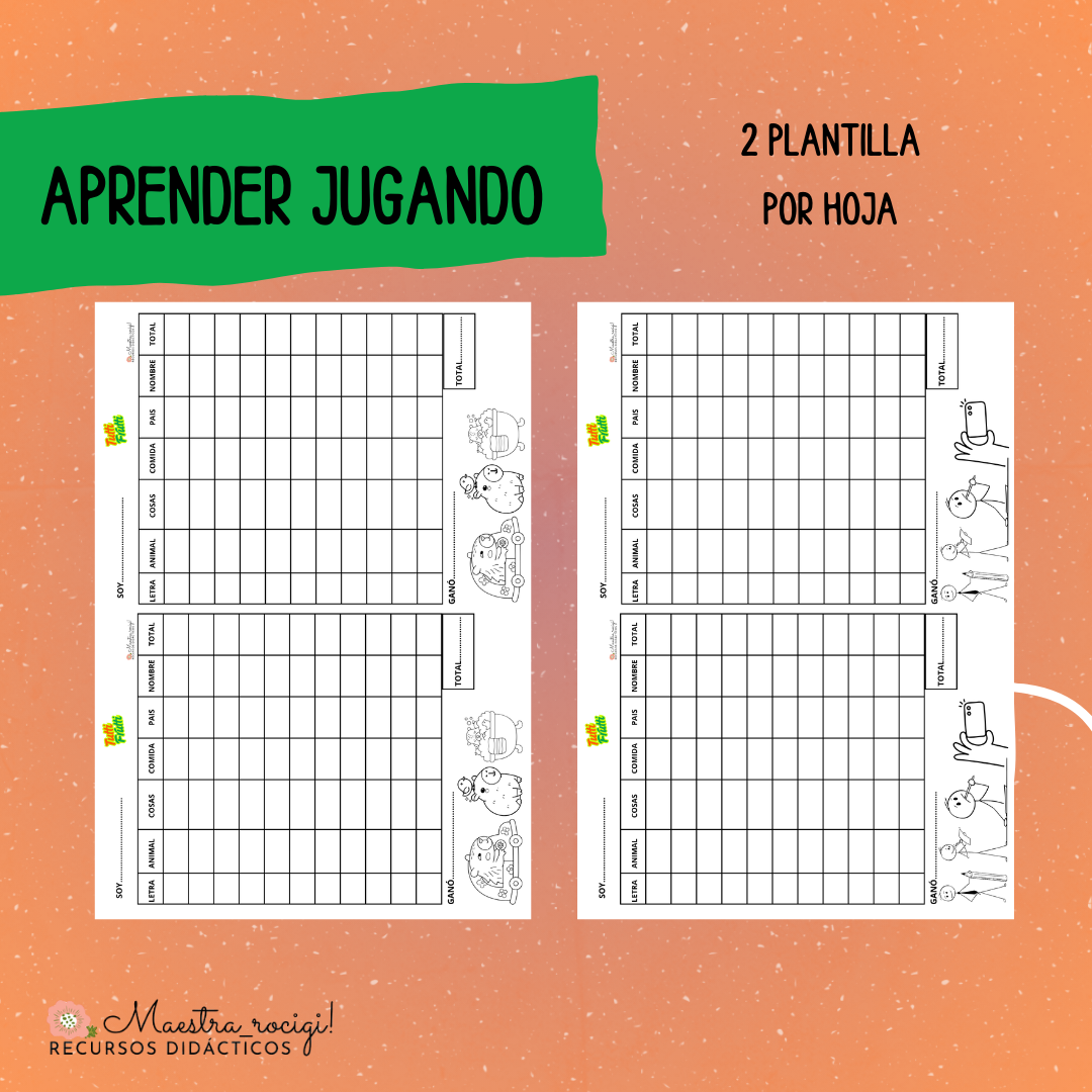 Algunas plantillas vienen ya completas con las categorías y otras en blanco para que vos misma elijas que categoría jugar con tus alumnos!