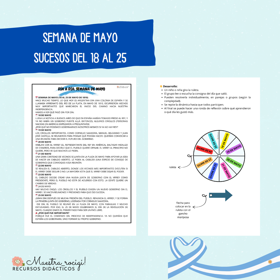 💙Texto e ilustraciones exclusivas de los días clave de la Semana de Mayo