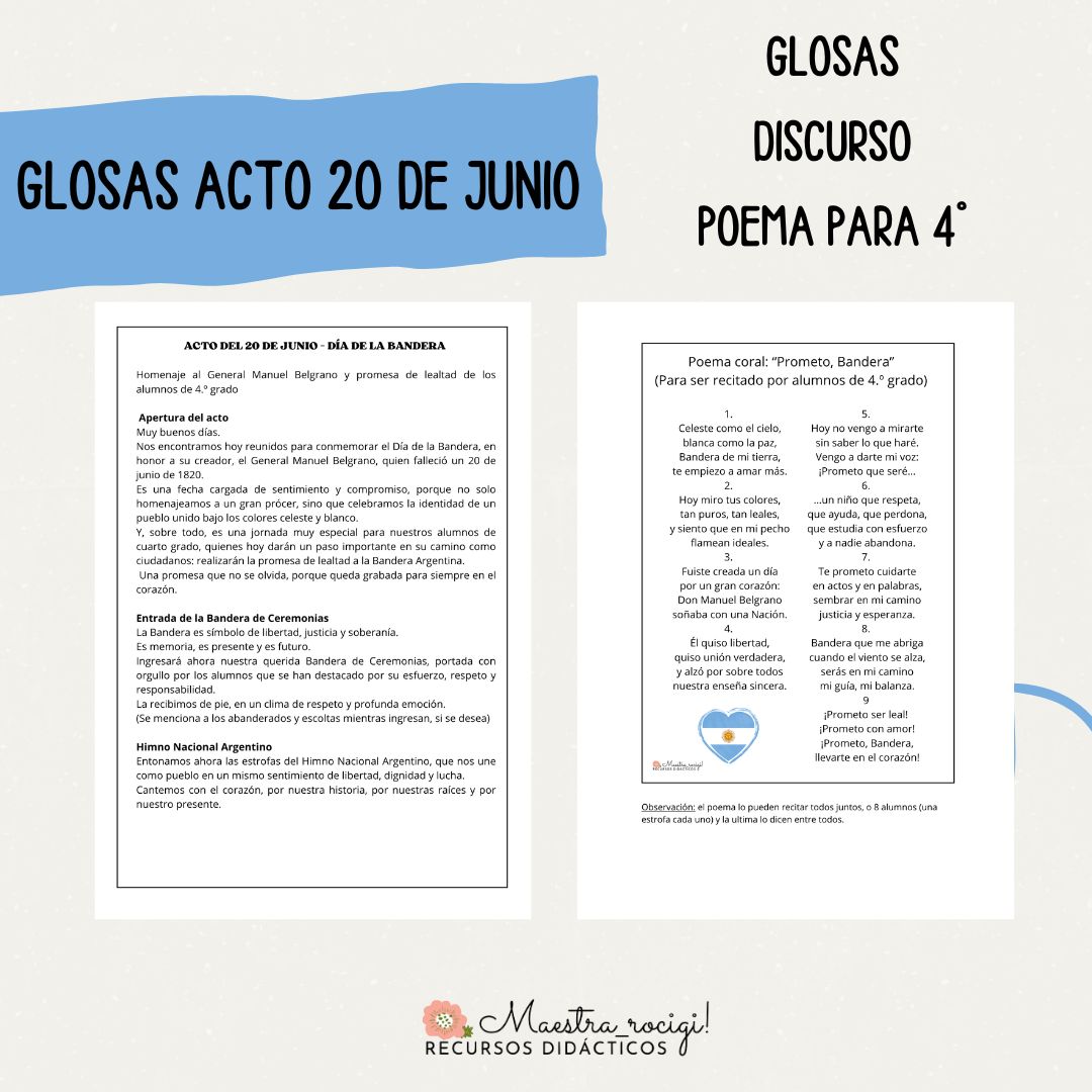 🇦🇷 📢 Acto 20 de junio: Día de la bandera nacional glosas y discurso "📢 🇦🇷
