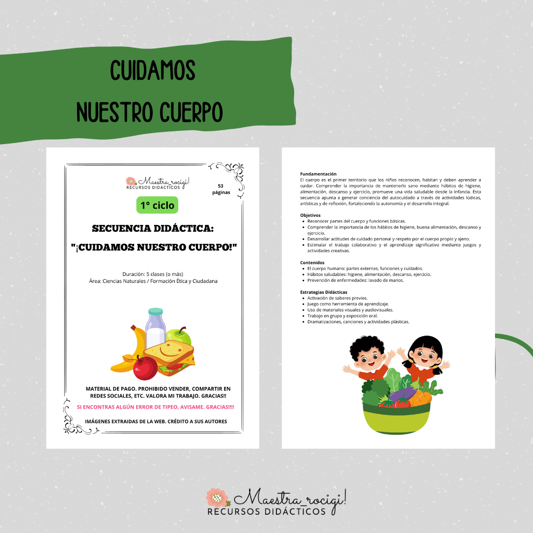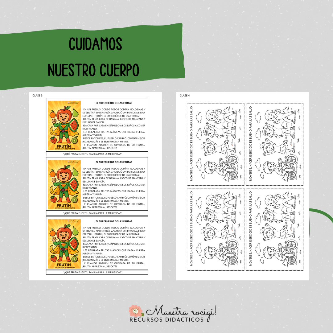 Secuencia de actividades para 5 o más días: el cuerpo, comer saludable, hábitos saludables, la importancia del movimiento, entre otros.