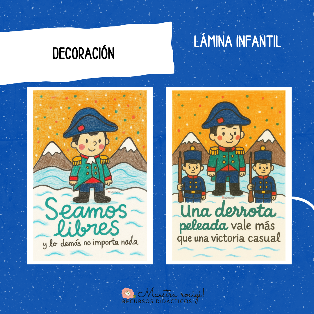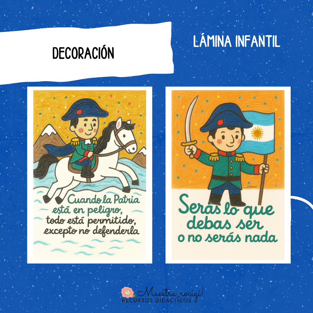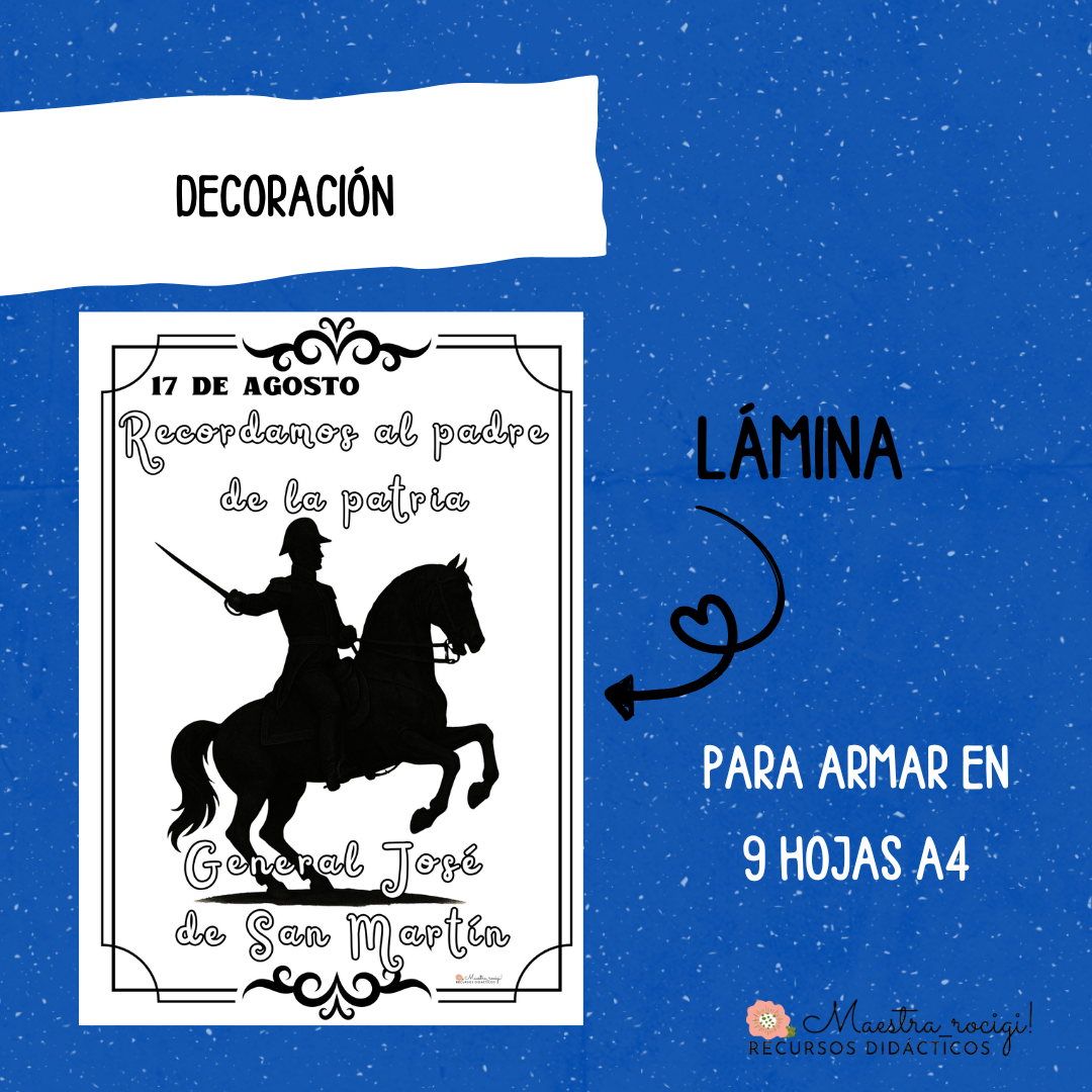 💙4 Láminas con imágenes infantiles con frases de San Martín (para armar en 4 hojas A4)