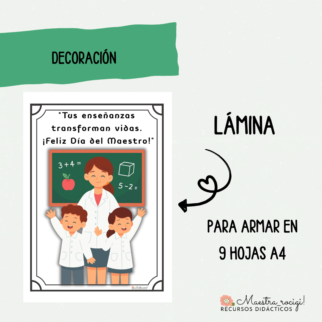 💙1 lámina (maestra y alumnos con frase) (para armar en 9 hojas A4)
