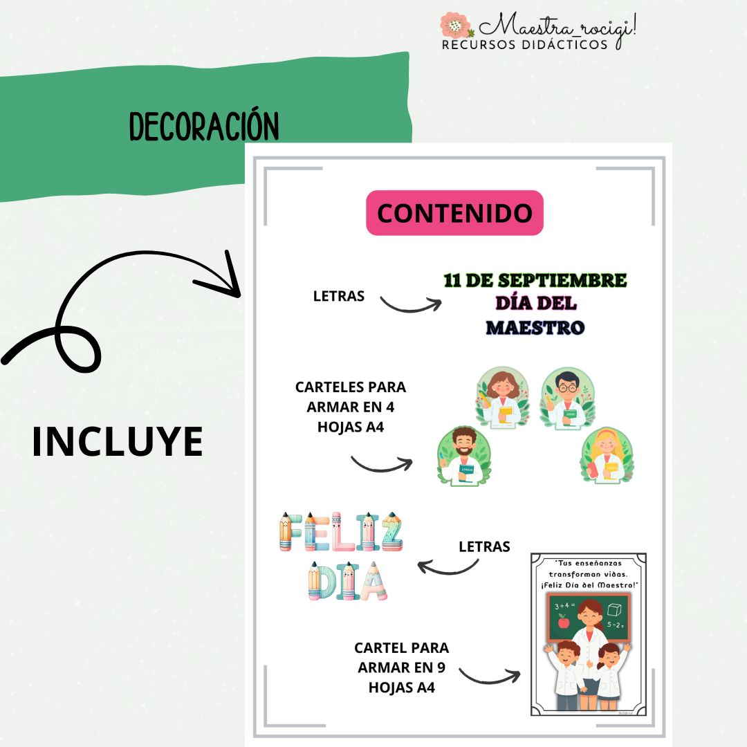 💙 4 Láminas de docentes (para armar en 4 hojas A4)