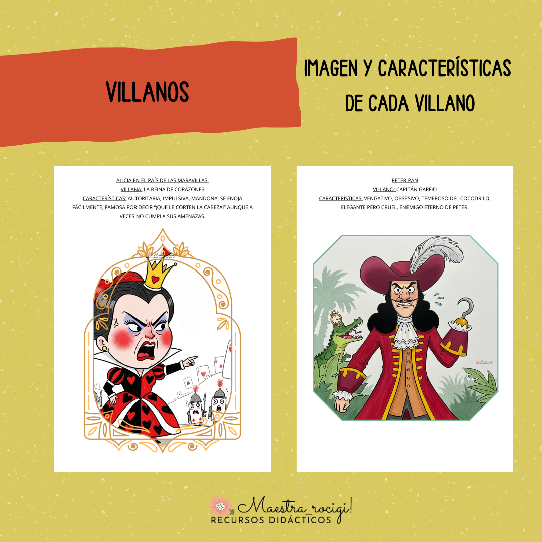DE CADA CUENTO ENCONTRÁS LA IMAGEN DEL VILLANO CON SUS CARACTERÍSTICAS.