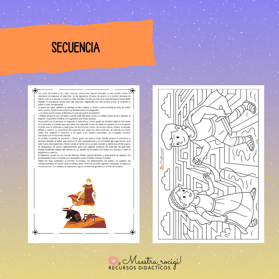 👧👦Secuencia. Laberintos: tres mitos griegos 🏹⚖️🗡