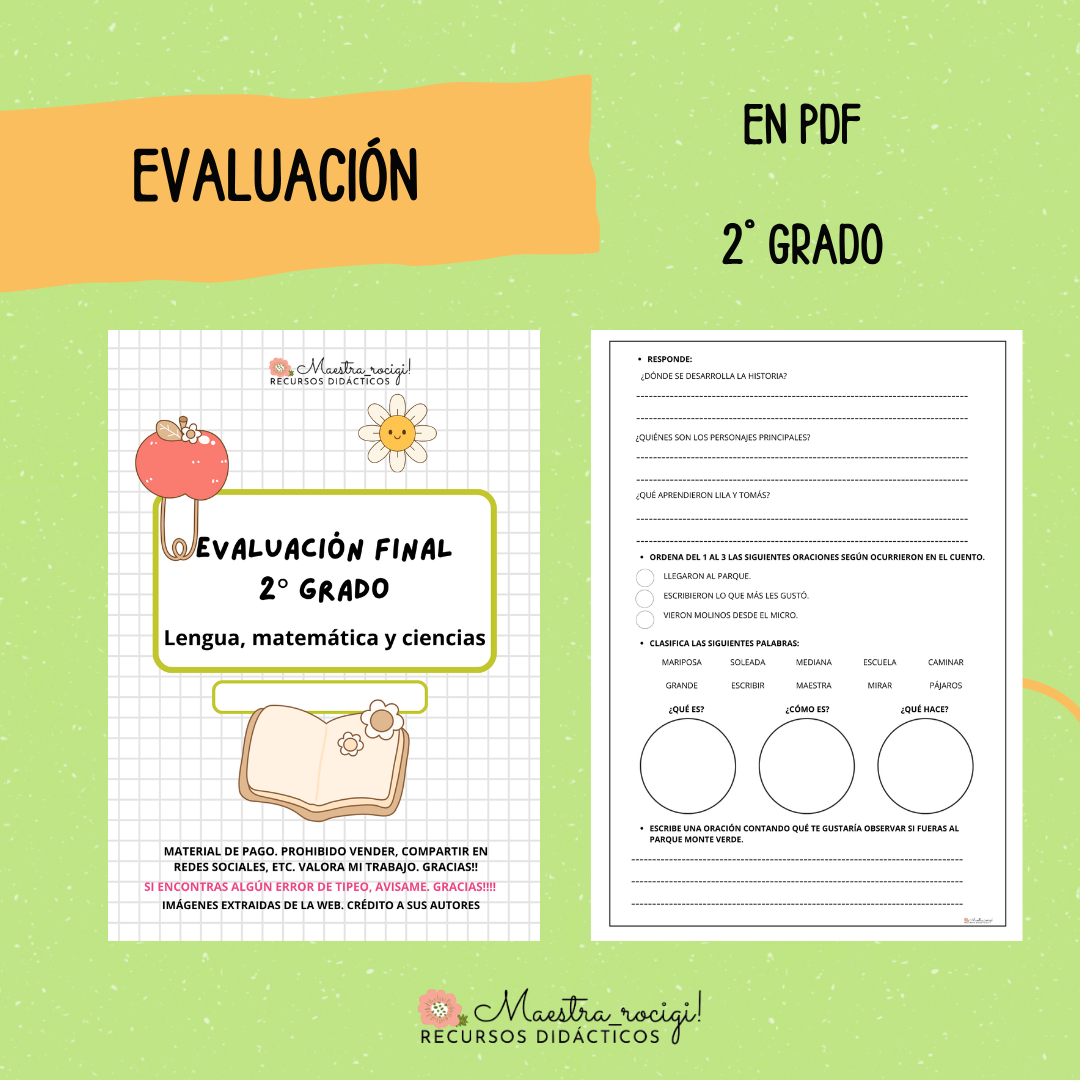 📖Cada evaluación viene en tamaño A4 o dos por hoja.