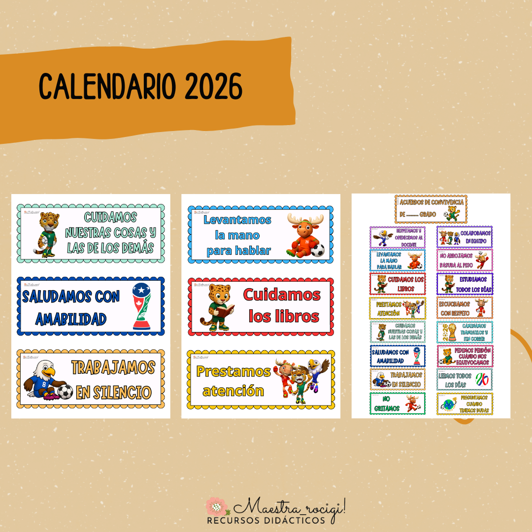Normas de Convivencia temática MUNDIAL en imprenta mayúscula y minúscula