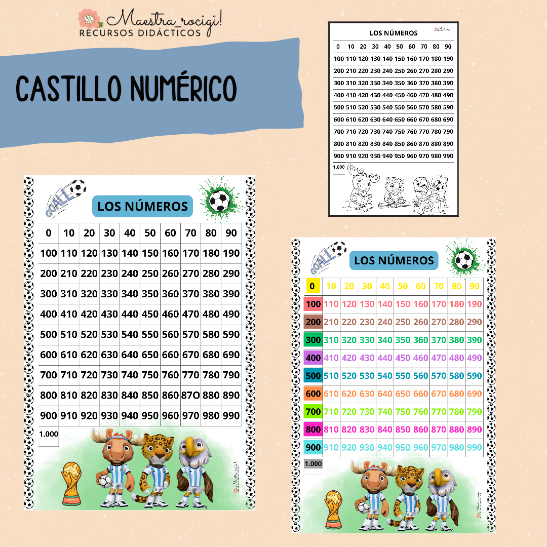 Castillo numérico del 0 al 1000 (de 10 en 10) temática Mundial 2026