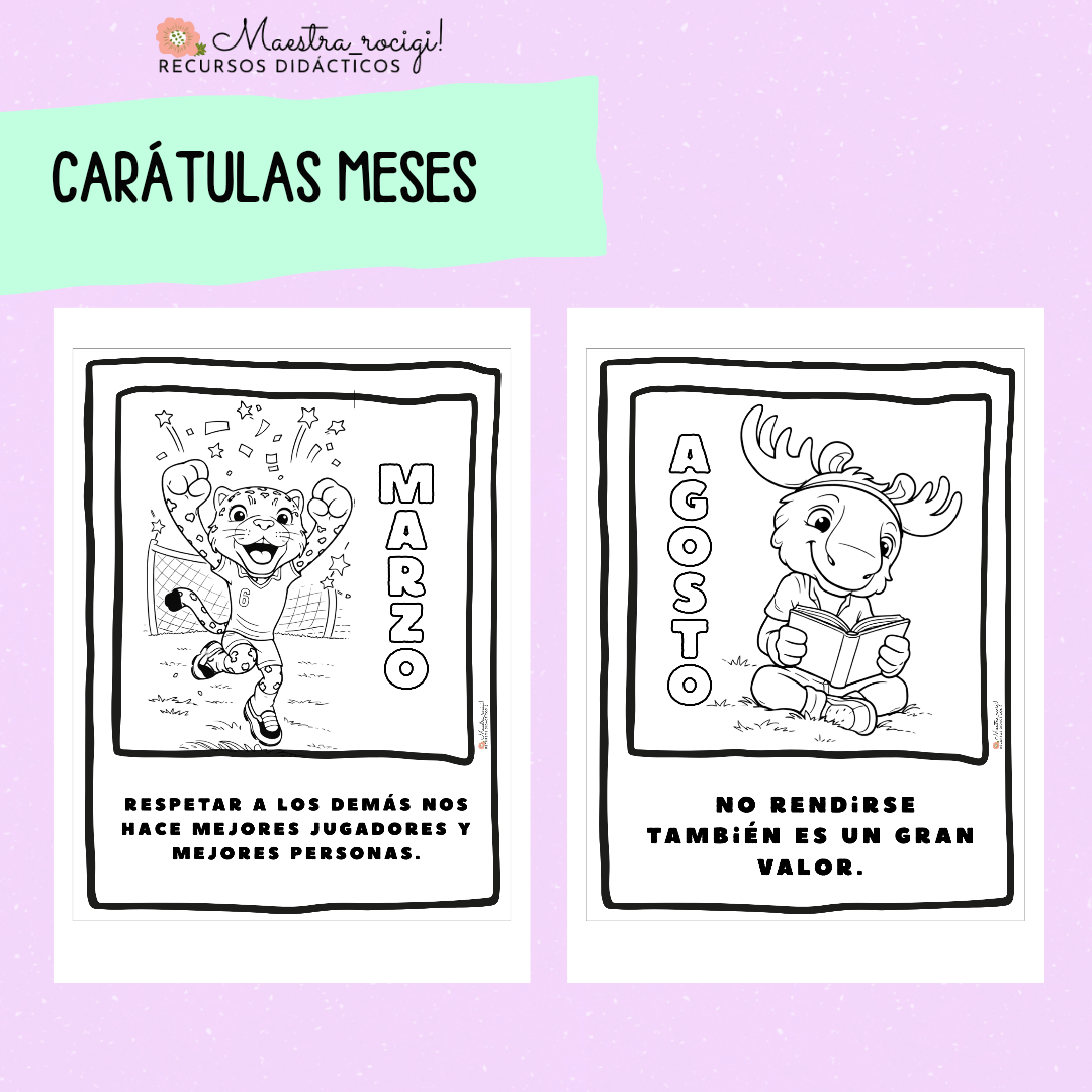 Cada mes trae una frase y es para colorear. Ideal para pegar en el cuaderno al comienzo de cada mes.
