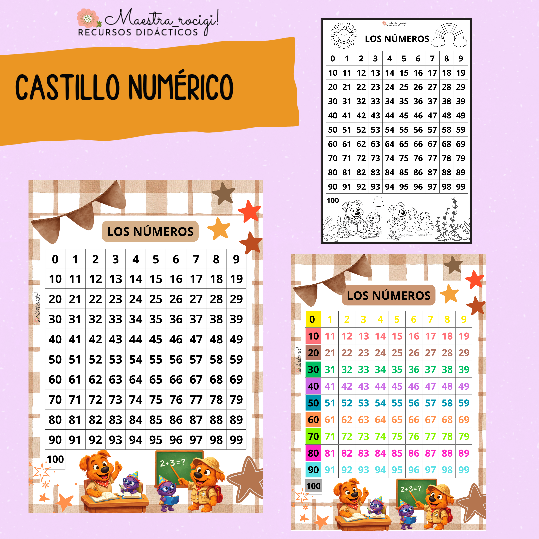 Castillo numérico del 0 al 100 temática TOTO Y LA PULGA