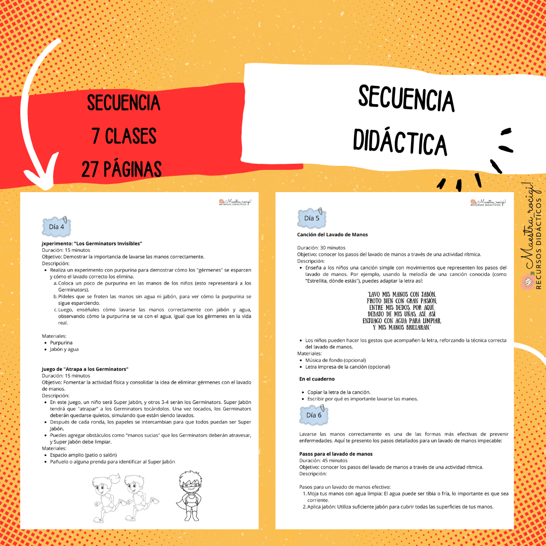 Secuencia de actividades para 7 días: cuento, dramatización, experimento, manualidad, crucigrama, entre otros.