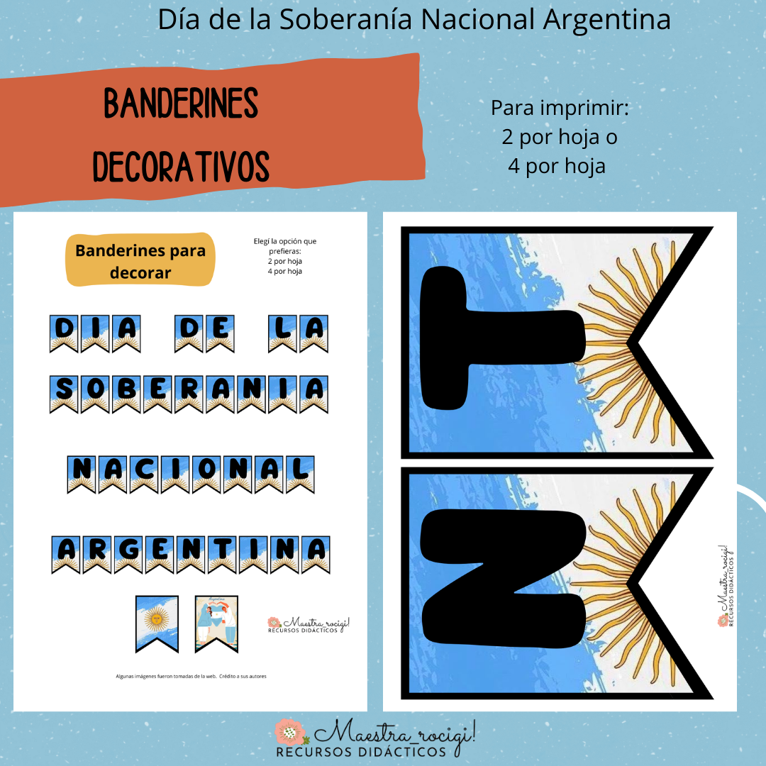 Banderin decorativo: Día de la Soberanía Nacional Argentina.
